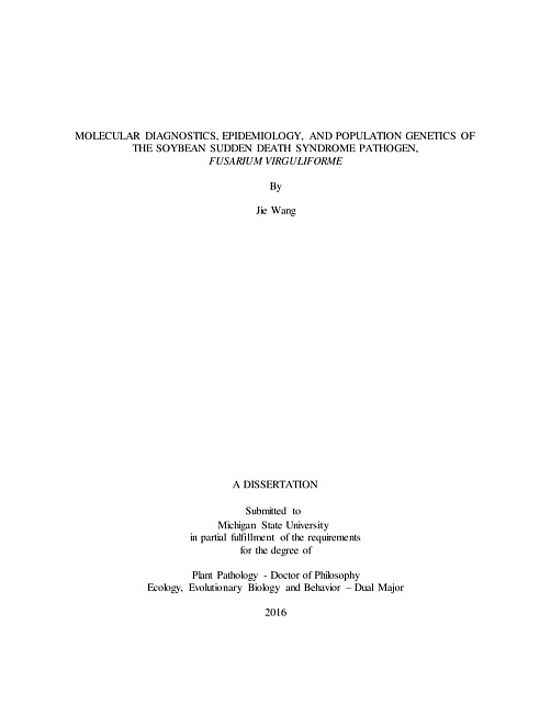 Molecular diagnostics, epidemiology, and population genetics of the soybean sudden death syndrome pathogen, Fusarium virguliforme