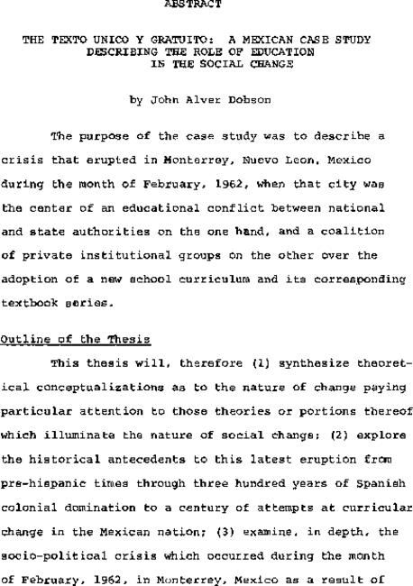 The texto unico y gratuito : a Mexican case study describing the role of education in social change