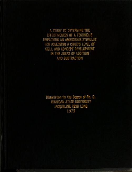 A study to determine the effectiveness of a technique employing an ambiuous stimulus for assessing a child's level of skill and concept development in the areas of addition and subtraction