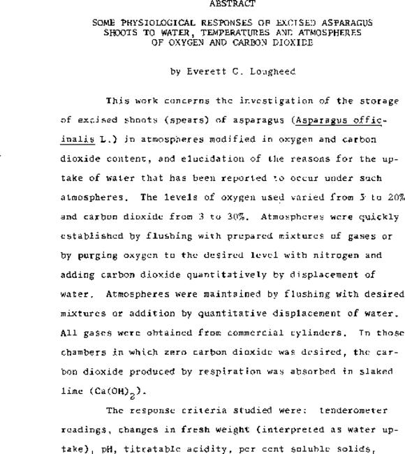 Some physiological responses of excised asparagus shoots to water, temperatures and atmospheres of oxygen and carbon dioxide