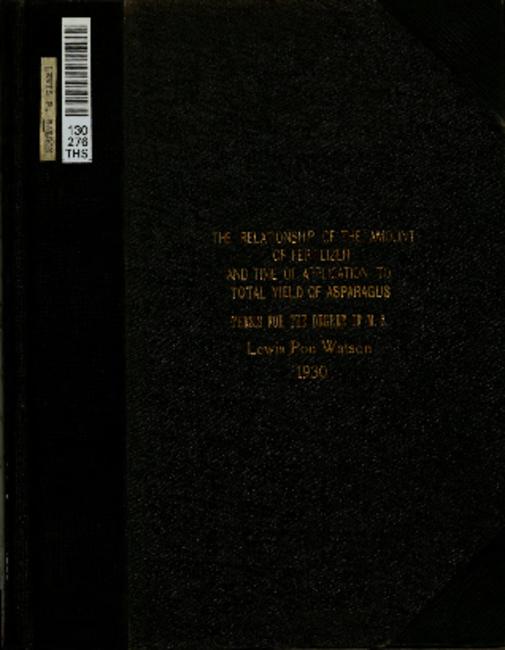 The relationship of the amount of fertilizer & time of application to total yield of asparagus