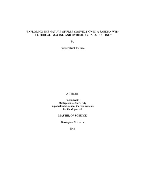 Free convection is an important process that has applications in many disciplines of earth science and is a factor in a variety of environmental issues. Although the study of free convection has been historically limited to theory, laboratory experiments, numerical modeling, and secondary field evidence, recent studies have used electrical resistivity geophysical methods to capture direct evidence of this phenomenon in a natural field setting. However, there is still very little known about the transient characteristics of free convection in a field setting.This thesis uses geophysics and hydrological modeling to investigate the occurrence, initiating mechanisms, and transient nature of free convection in a coastal sabkha in the United Arab Emirates. The electrical resistivity data shows that free convection in the sabkha is an episodic process that is likely caused by the dissolution of the halite crust by precipitation and its subsequent infiltration to the aquifer. Hydrological modeling of the system supports precipitation as the initiating mechanism and allows for the characterization of the growth and decay of the convective fingers.