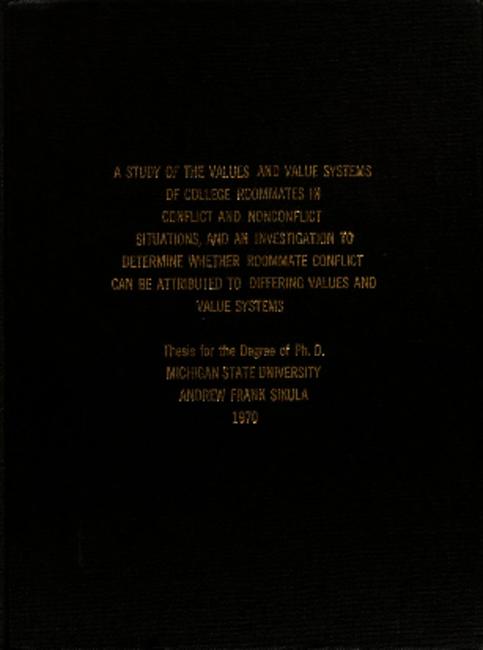 A study of the values and value systems of college roommates in conflict and nonconflict situations, and an investigation to determine whether roommate conflict can be attributed to differing values and value systems