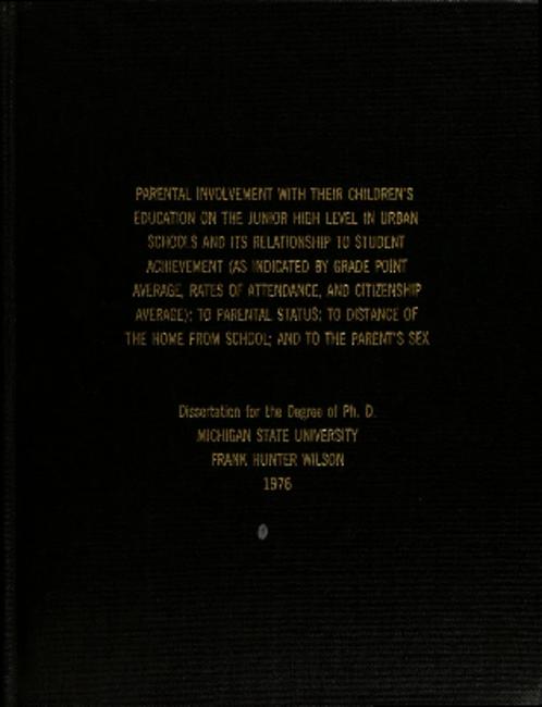 Parental involvement with their children's education on the junior high level in urban schools and its relationship to student achievement (as indicated by grade point average, rates of attendance, and citizenship average) ; to parental status ; to dis...