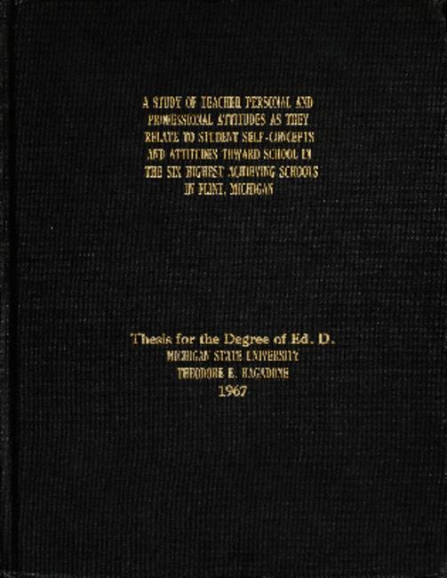 A study of teacher personal and professional attitudes as they relate to student self-concepts and attitudes toward school in the six highest achieving schools in Flint, Michigan