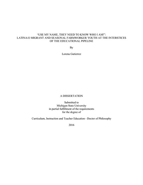 "Use my name, they need to know who I am!" : Latina/o migrant and seasonal farmworker youth at the interstices of the educational pipeline