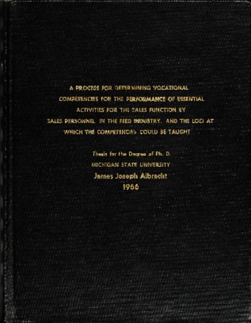 A process for determining vocational competencies for the performance of essential activities for the sales function by sales personnel in the feed industry, and the loci at which the competencies could be taught