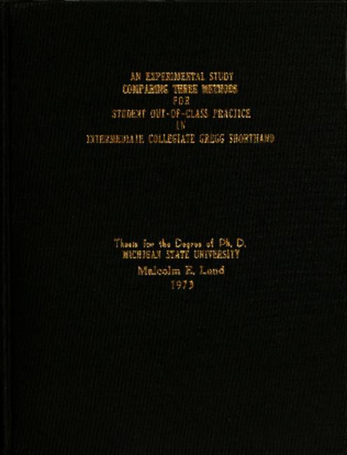 An experimental study comparing three methods for student out-of-class practice in intermediate collegiate Gregg shorthand