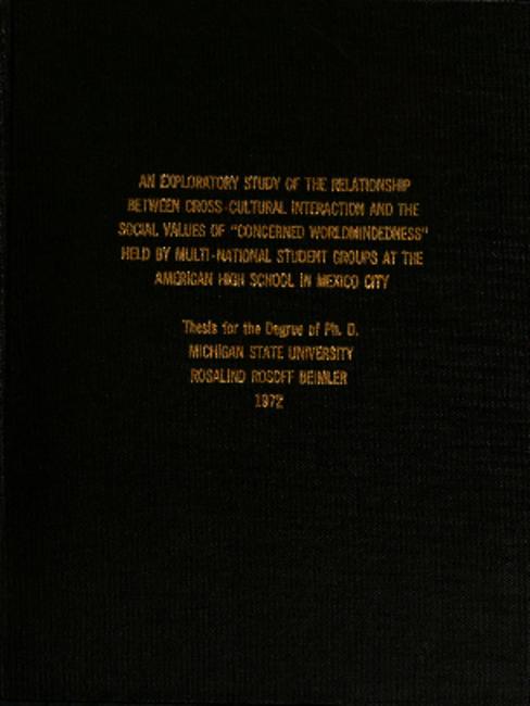 An exploratory study of the relationsphip between crosscultural interaction and the social values of "concerned worldmindedness" held by multi-national student groups at the American High School in Mexico City
