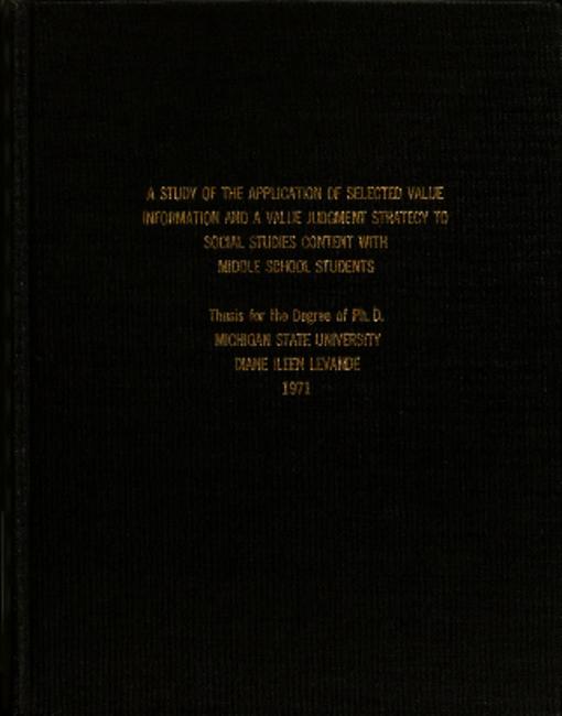 A study of the application of selected value information and a value judgment strategy to social studies content with middle school students