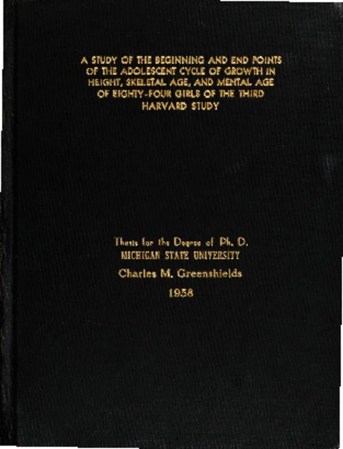 A study of the beginning and end points of the adolescent cycle of growth in height, skeletal age, and mental age of eighty-four girls of the third Harvard study