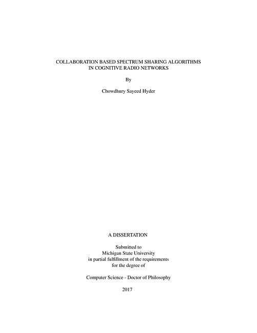 Collaboration based spectrum sharing algorithms in cognitive radio networks