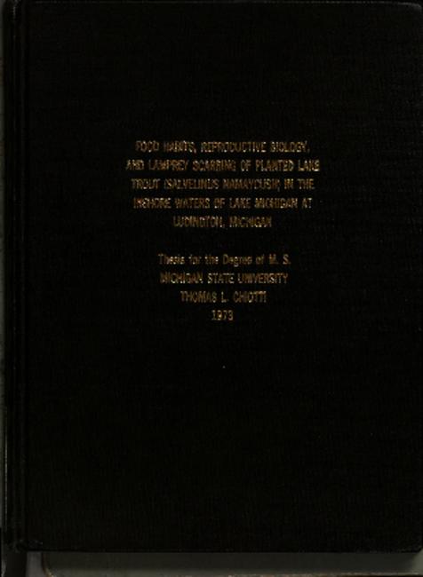 Food habits, reproductive biology, and lamprey scarring of planted lake trot (salvelinus namaycush) in the inshore waters of Lake Michigan at Ludington, Michigan