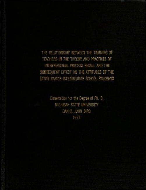 The relationship between the training of teachers in the theory and practices of interpersonal process recall and the subsequent effect on the attitudes of the Eaton Rapids intermediate school students