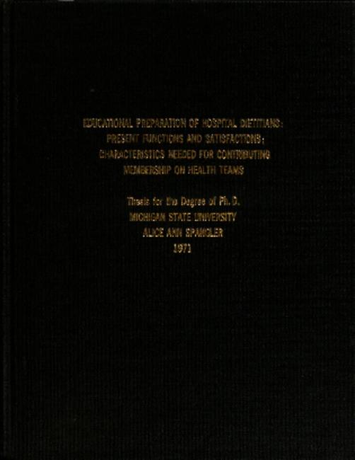 Educational preparation of hospital dietitians : present functions and satisfactions ; characteristics needed for contributing membership on health teams