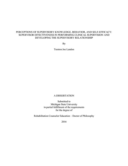 Perceptions of supervisory knowledge, behavior, and self-efficacy : supervisor effectiveness in performing clinical supervision and developing the supervisory relationship