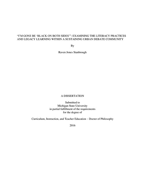 "'I'm gone be 'Black on both sides'" : examining the literacy practices and legacy learning within a sustaining urban debate community