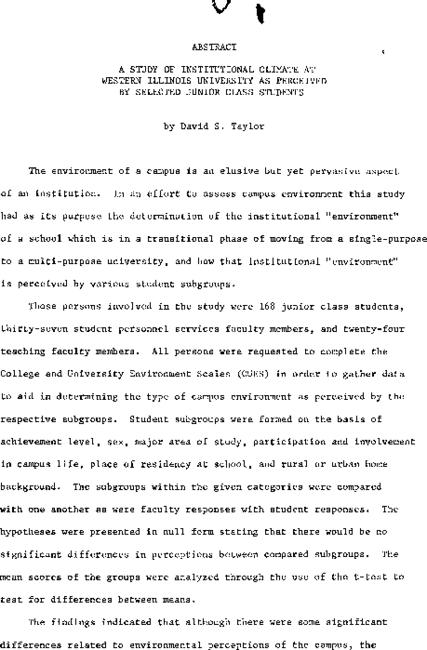 A study of institutional climate at Western Illinois University as perceived by selected junior class students