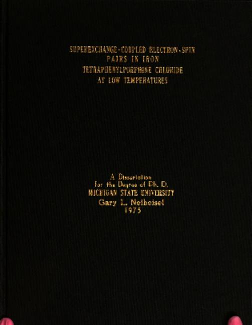 Superexchange-coupled electron-spin pairs in iron tetraphenylporphine chloride at low temperatures