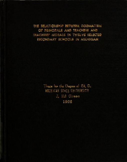 The relationship between dogmatism of principals and teachers and teachers' morale in twelve selected secondary schools in Michigan