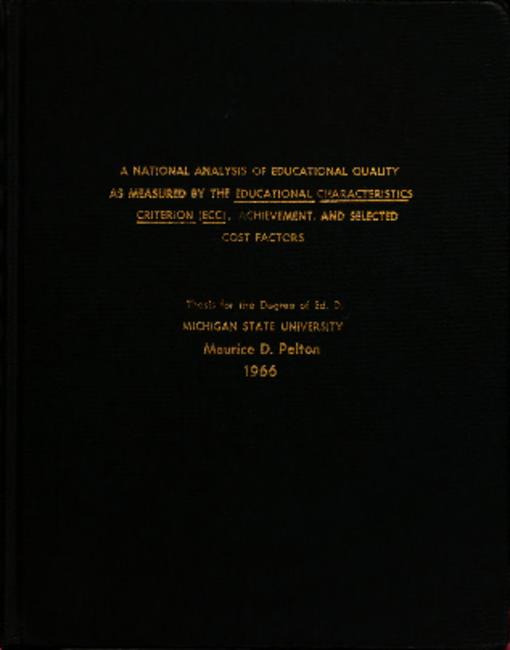 A national analysis of educational quality as measured by the Educational Characteristics Criterion (EEC), achievement, and selected costs factors