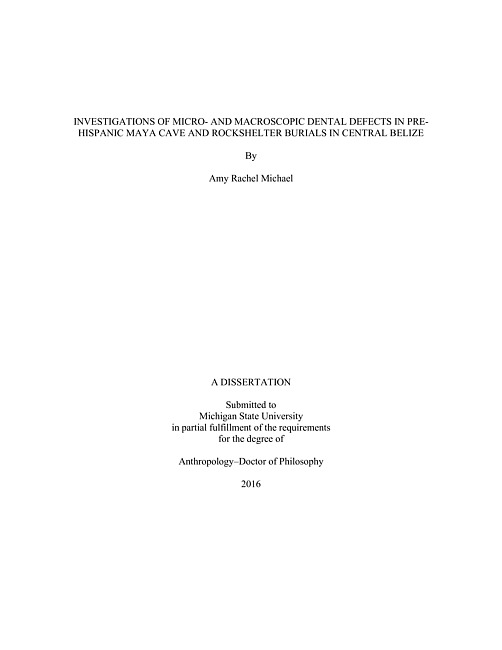 "This dissertation utilizes indicators of childhood growth disruptions in the form of micro- and macroscopic dental defects to test questions aimed at defining aspects of social and economic organization of Classic period (AD 250 - 900) Maya populations in west-central Belize." -- Abstract.