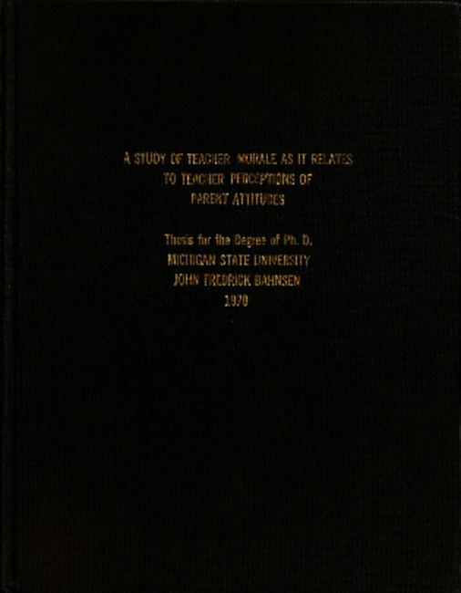 A study of teacher morale as it relates to teacher perceptions of parent attitudes