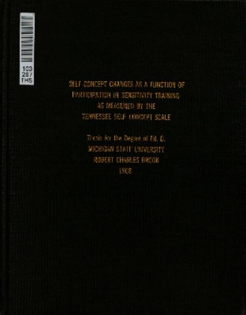 Self concept changes as a function of participation in sensitivity training as measured by the Tennessee Self Concept Scale