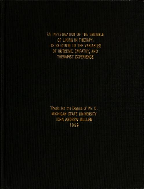 An investigation of the variable of liking in therapy : its relation to the variables of outcome, empathy, and therapist experience