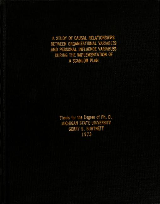 A study of causal relationships between organizational variables and personal influence variables during the implementation of a Scanlon Plan