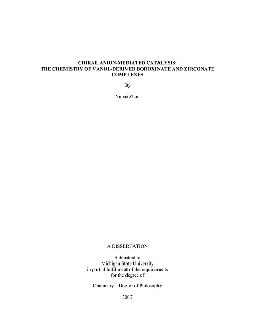 Chiral anion-mediated catalysis : the chemistry of vanol-derived boroxinate and zirconate complexes