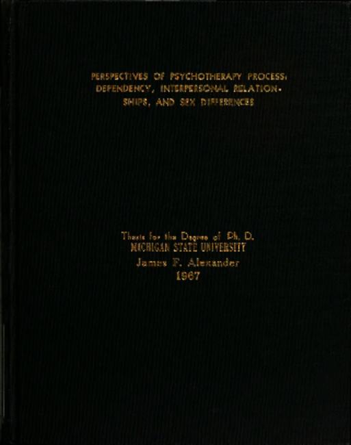 Perspectives of psychotherapy process : dependency, interpersonal relationships, and sex differences