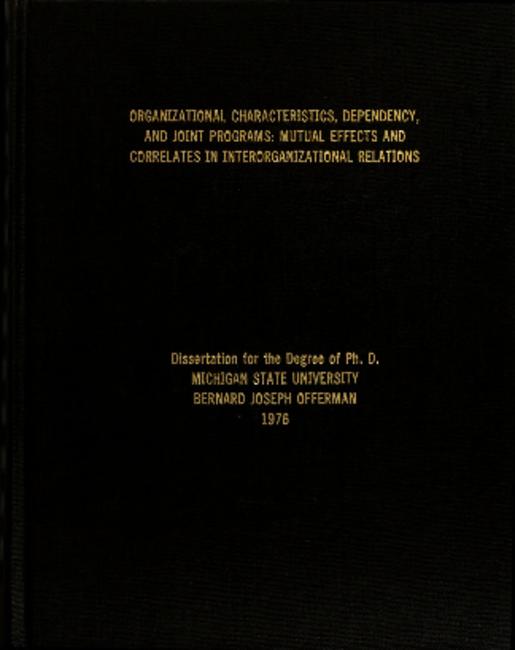 Organizational characteristics, dependency, and joint programs : mutual effects and correlates in interorganizational relations