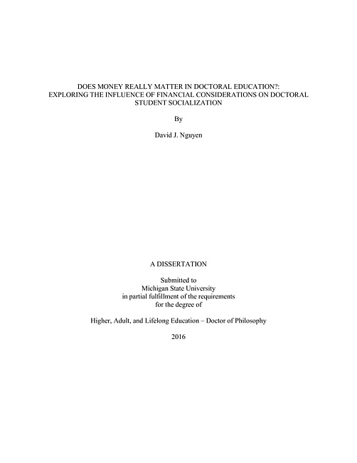 Does money really matter in doctoral education? : exploring the influence of financial considerations on doctoral student socialization