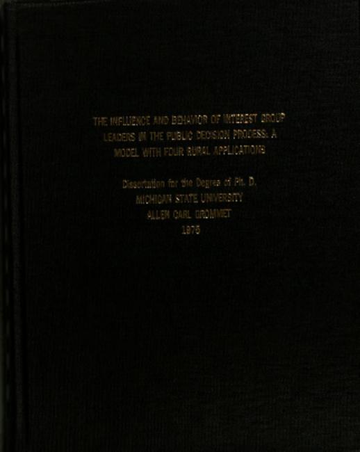 The influence and behavior of interest group leaders in the public decision process : a model with four rural applications