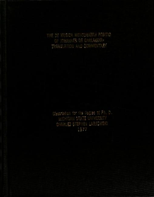 The De Musica Mensurabili Positio of Johannes de Garlandia : translation and commentary