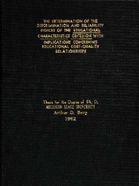The determination of the discrimination and reliability indices of the educational characteristics criterion with implications concerning educational cost-quality relationships
