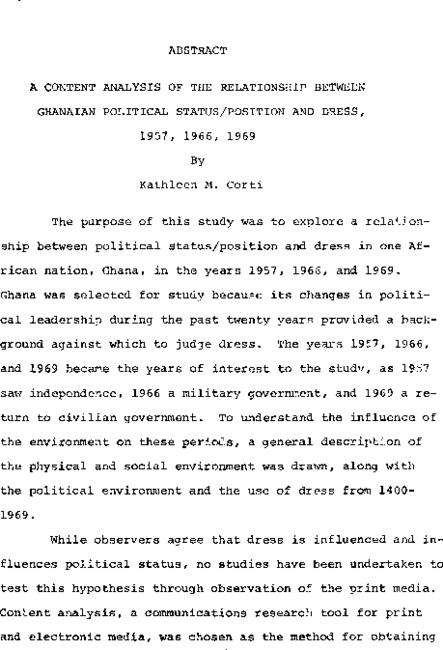 A content analysis of the relationship between Ghanaian political status/position and dress : 1957, 1966, 1969