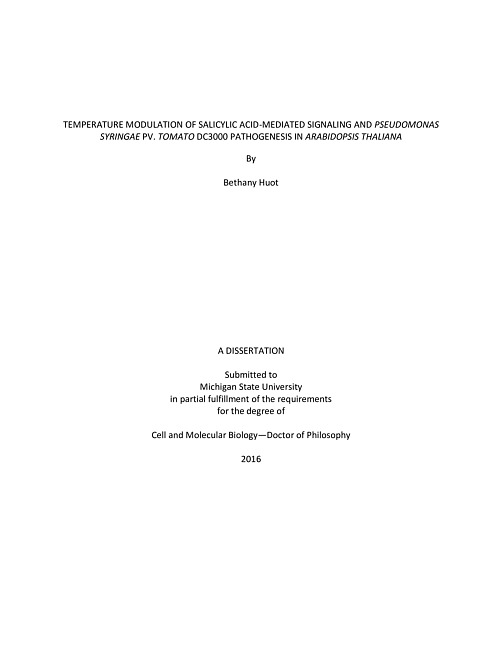 Temperature modulation of salicylic acid-mediated signaling and Pseudomonas syringae pv. tomato DC3000 pathogenesis in Arabidopsis thaliana