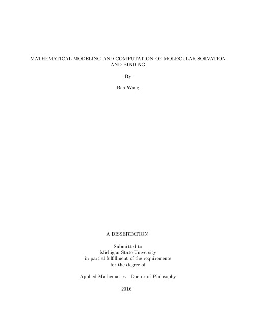 This dissertation contains a couple of results on biophysics modeling and computation, ranging from solvated molecular conformation modeling to molecular solvation and binding modeling in the solvent environment.We study the solvent excluded surface in Eulerian representation, provide the surface area and enclosed volume calculation, the molecular topological analysis is also addressed. We further analyze the electrostatic for the solvated molecules with the Eulerian solvent excluded surface. We show that our surface is analytical without any numerical approximation.We study the coarse grid Poisson Boltzmann solver. Our software enables extremely accurate numerical solution to the Poisson Boltzmann equation even at very large grid spacing. As a consequence, our software provides a reliable electrostatic calculation for the solvation and protein ligand binding related problem.We study the blind solvation free energy prediction problem. A hybrid of physical and statistical protocol is proposed for highly accurate solvation free energy prediction. Furthermore, to mediate the force field parametrization influence on the solvation free energy prediction, we propose a learning to rank based solvation free energy prediction paradigm.We explore the protein ligand binding free energy prediction and docking scoring via the learning to rank approach. In which a learn to rank based scoring function is proposed for accurate protein ligand binding scoring.