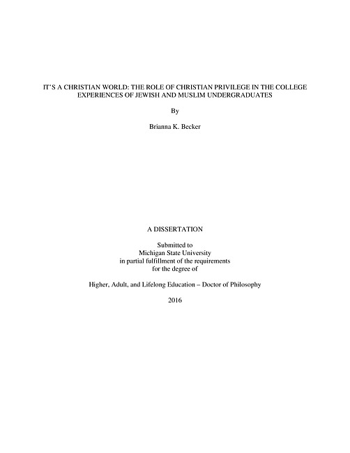 It's a Christian world : the role of Christian privilege in the college experiences of Jewish and Muslim undergraduates