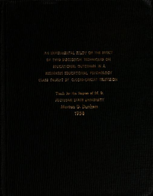 An experimental study of the effect of two discussion techniques on educational outcomes in a beginning educational psychology class taught by closed-circuit television