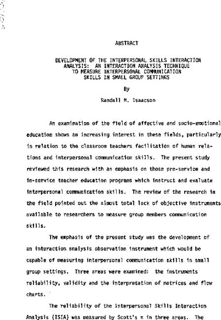 Development of the interpersonal skills interaction analysis : an interaction analysis technique to measure interpersonal communication skills in small group settings
