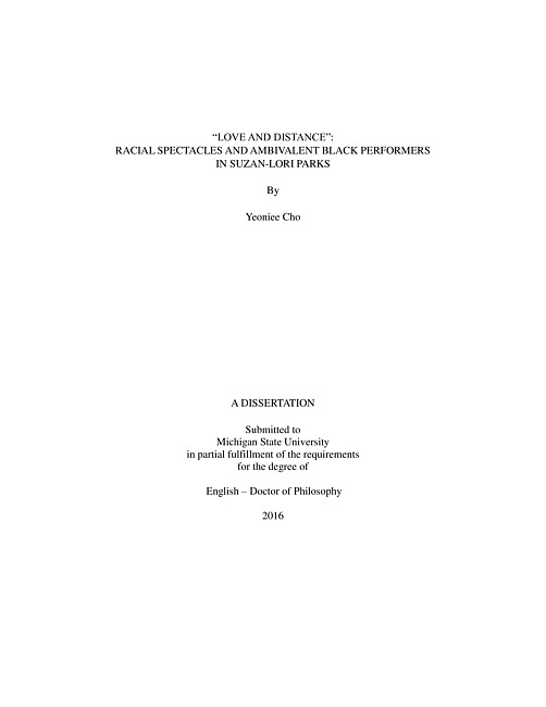 "Love and distance" : racial spectacles and ambivalent black performers in Suzan-Lori Parks