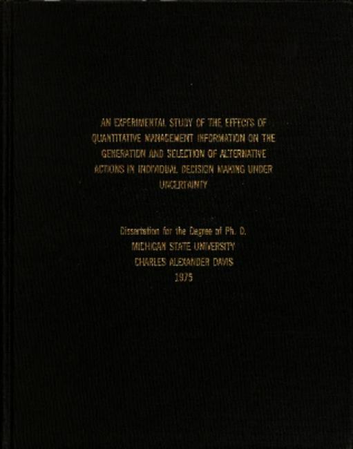 An experimental study of the effects of quantitative management information on the generation and selection of alternative actions in individual decision making under uncertainty