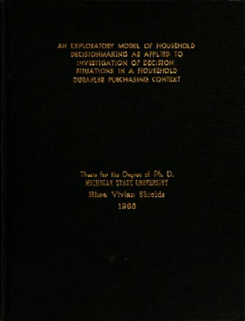 An exploratory model of household decisionmaking as applied to investigation of decision situations in a household durables purchasing context