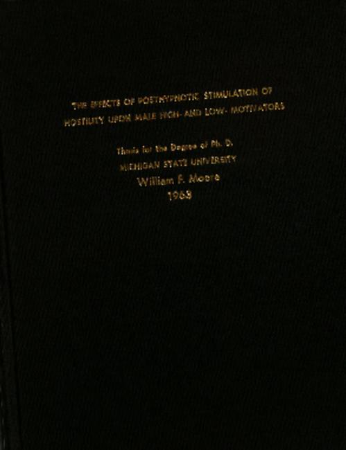 The effects of posthypnotic stimulation of hostility upon male high- and low-motivators