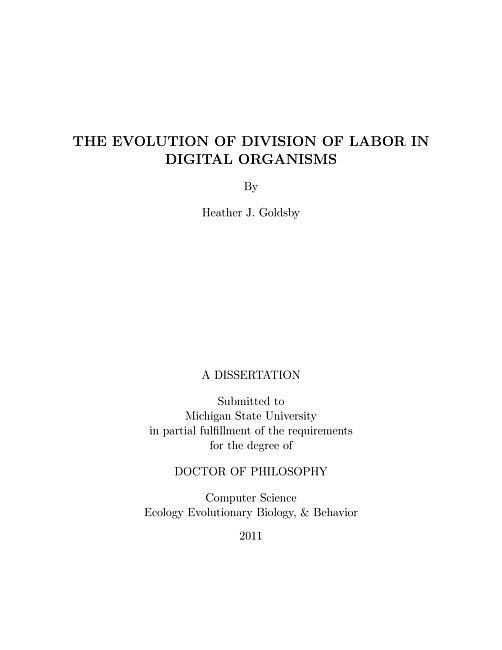 Division of labor is a hallmark strategy employed by a wide variety of groups ranging in complexity from bacteria to human economies. Within these groups, some individuals, such as worker ants, sacrifice their ability to reproduce and instead dedicate their lives to the maintenance of the colony and success of their kin. A worker ant may spend its entire life performing a single task, such as defending the colony or tending to the brood. The complexity of the strategies employed by these groups, combined with their rampant success, gives rise to questions regarding why division of labor exists. While extensive research has been done to better understand the patterns and mechanisms of division of labor, exploring this topic in an evolutionary context remains challenging to study due to the slow pace of evolution and imperfect historical data. Understanding how and why division of labor arises is pertinent not just for understanding biological phenomena, but also as a means to enable evolutionary computation techniques to address complex problems using problem decomposition. The objective of problem-decomposition approaches is to have a group of individuals cooperatively solve a complex task by breaking it into pieces, having specialist individuals solve the pieces, and reassembling the solution. Essentially, problem-decomposition approaches use division of labor to enable groups to solve more challenging problems than any individual could alone. Unfortunately, human engineers have struggled with creating effective, automated problem-decomposition approaches.In this dissertation, I use digital evolution (i.e., populations of self-replicating computer programs that undergo open-ended evolution) to investigate questions related to the evolution of division of labor and to apply these insights to problem decomposition techniques. This dissertation has three primary components: First, we provide experimental evidence that evolutionary computation techniques can evolve groups of individuals that exhibit division of labor. Second, we explore two hypotheses for the evolution of division of labor. Specifically, we find support for the hypothesis that temporal polyethism (i.e., where a worker's age is related to the task it performs within the colony) may result from the evolutionary pressures of aging and risks associated with tasks. Additionally, we find support for a hypothesis initially proposed by Adam Smith, the premier economist, that the presence of task-switching costs results in an increase in the amount of division of labor exhibited by groups. Third, we describe how our analyses revealed that groups of organisms evolved as part of our task-switching work exhibit complex problem decomposition strategies that can potentially be applied to other evolutionary computation challenges. This work both informs biological studies of division of labor and also provides insights that can enable the development of new mechanisms for using evolutionary computation to solve increasingly complex engineering problems.