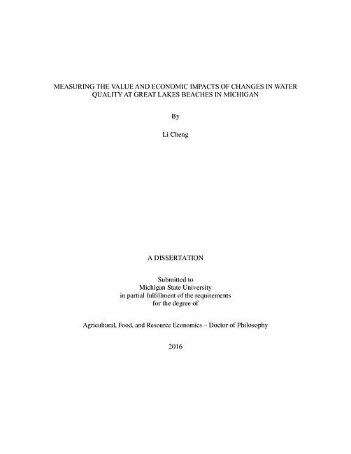 Measuring the value and economic impacts of changes in water quality at Great Lakes beaches in Michigan
