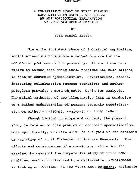 A comparative study of rural fishing communities in eastern Venezuela : an anthropological explanation of economic specialization